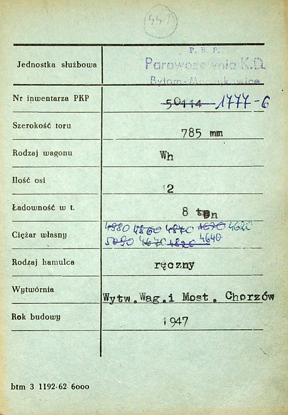 Karta wagonu Górnośląskich Kolei Wąskotorowych |