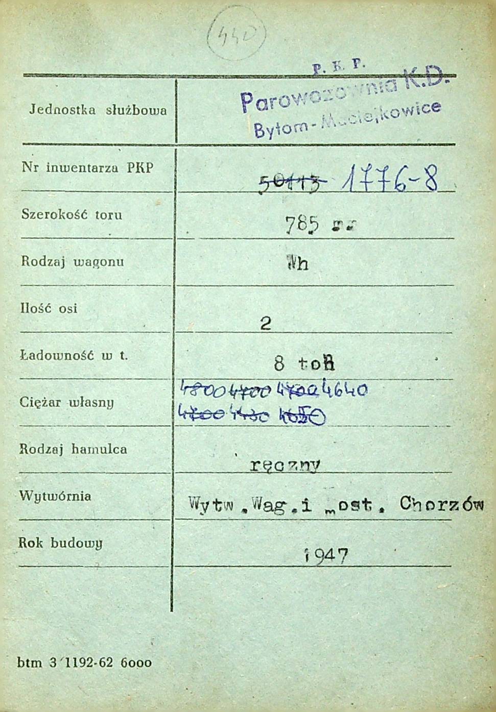Karta wagonu Górnośląskich Kolei Wąskotorowych |
