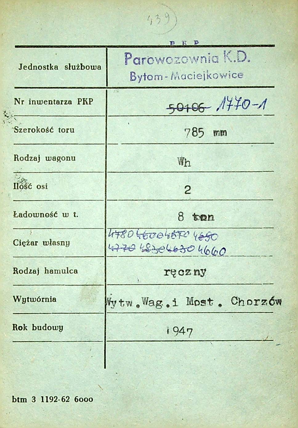 Karta wagonu Górnośląskich Kolei Wąskotorowych |