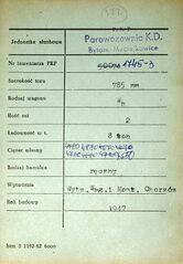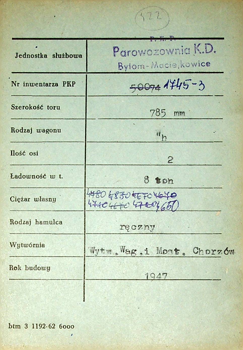 Karta wagonu Górnośląskich Kolei Wąskotorowych |