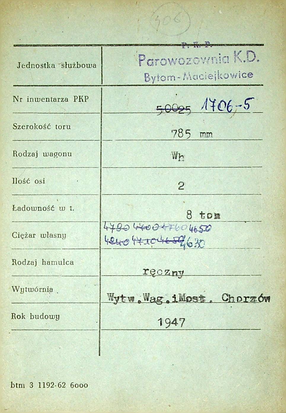 Karta wagonu Górnośląskich Kolei Wąskotorowych |