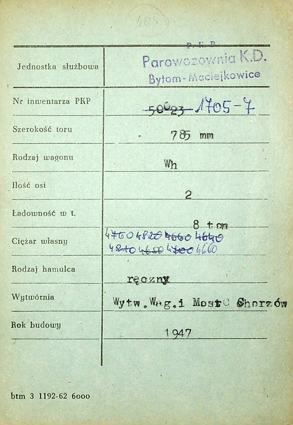 Karta wagonu Górnośląskich Kolei Wąskotorowych |