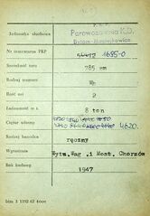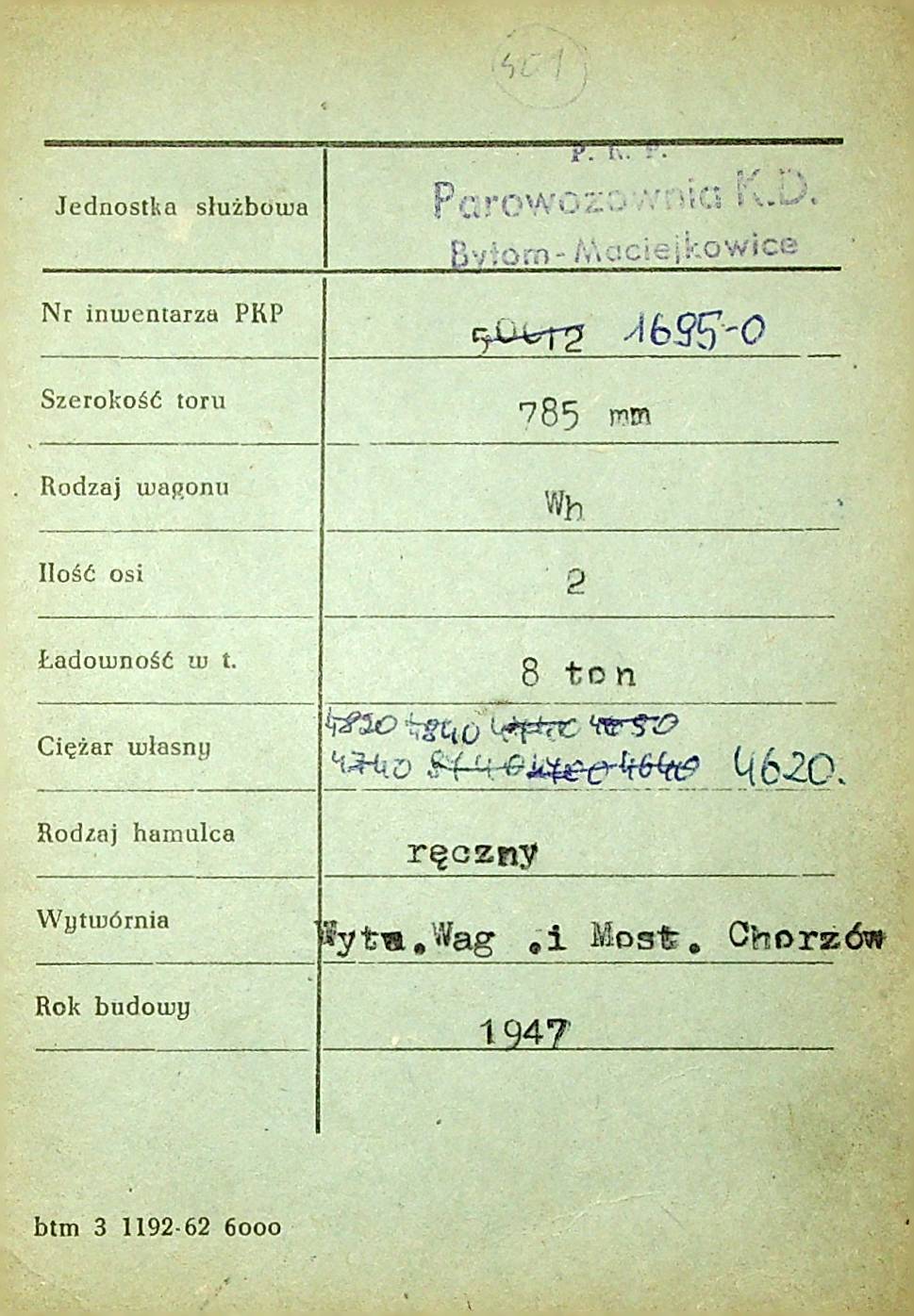 Karta wagonu Górnośląskich Kolei Wąskotorowych |