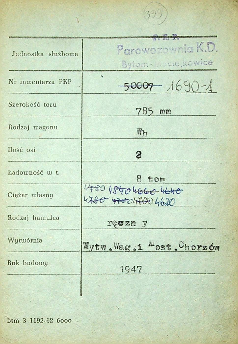 Karta wagonu Górnośląskich Kolei Wąskotorowych |