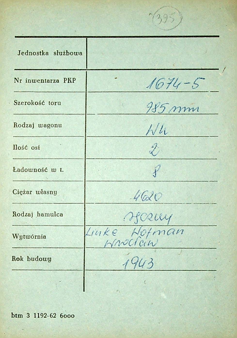 Karta wagonu Górnośląskich Kolei Wąskotorowych |