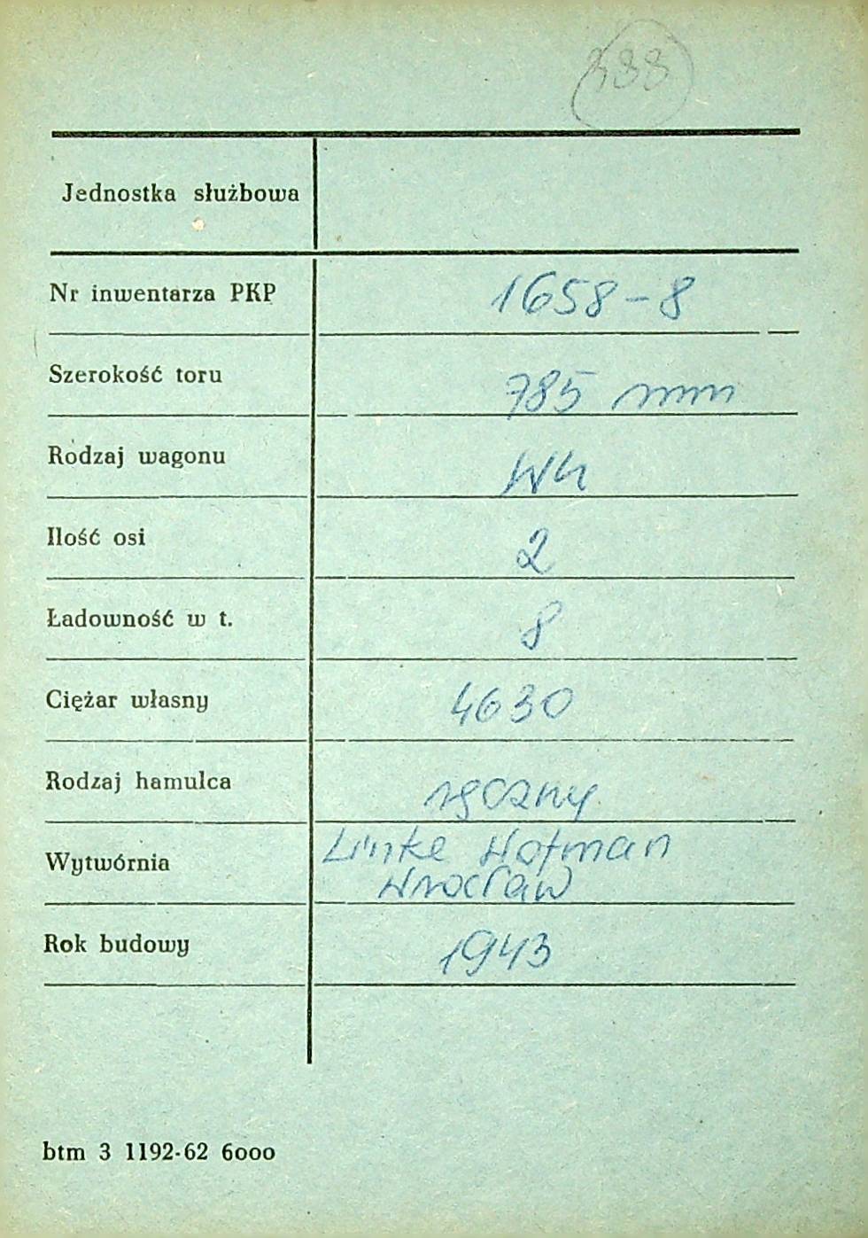 Karta wagonu Górnośląskich Kolei Wąskotorowych |