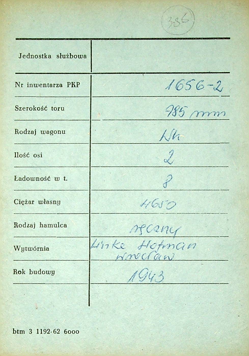 Karta wagonu Górnośląskich Kolei Wąskotorowych |