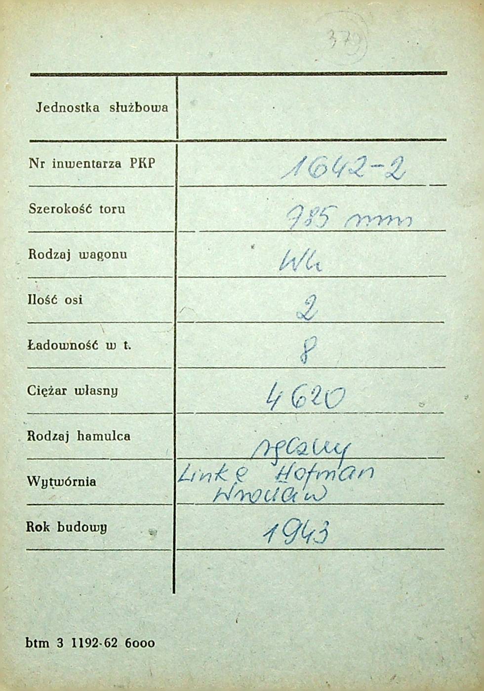 Karta wagonu Górnośląskich Kolei Wąskotorowych |