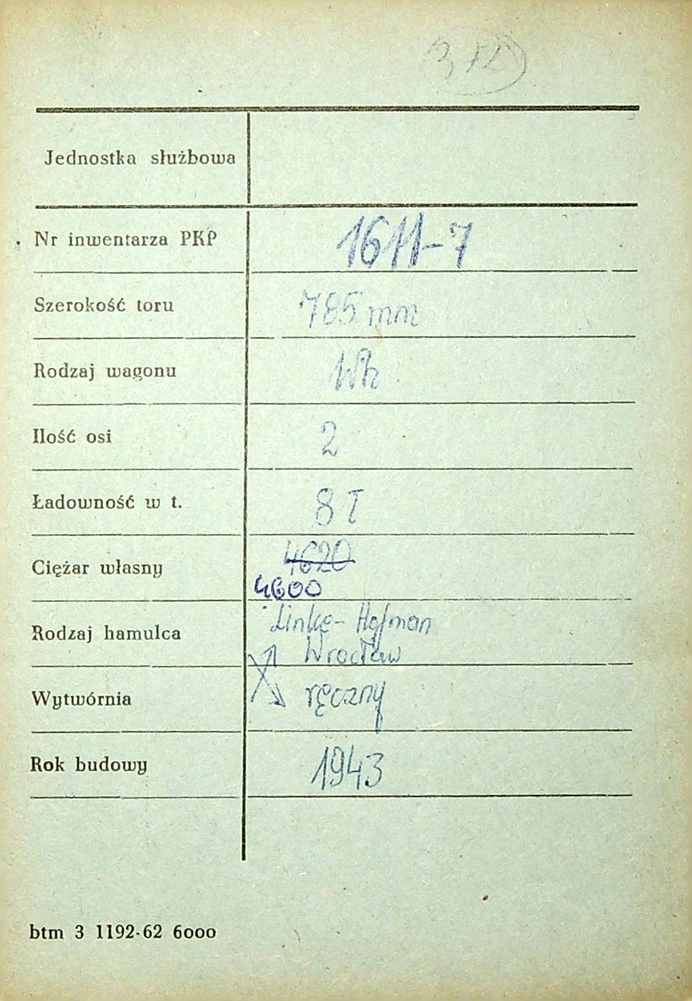 Karta wagonu Górnośląskich Kolei Wąskotorowych |