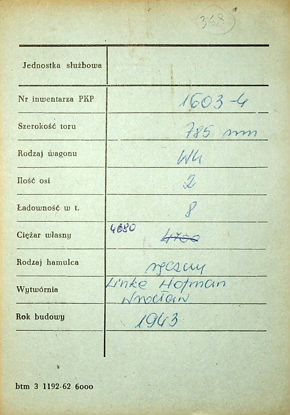 Karta wagonu Górnośląskich Kolei Wąskotorowych |