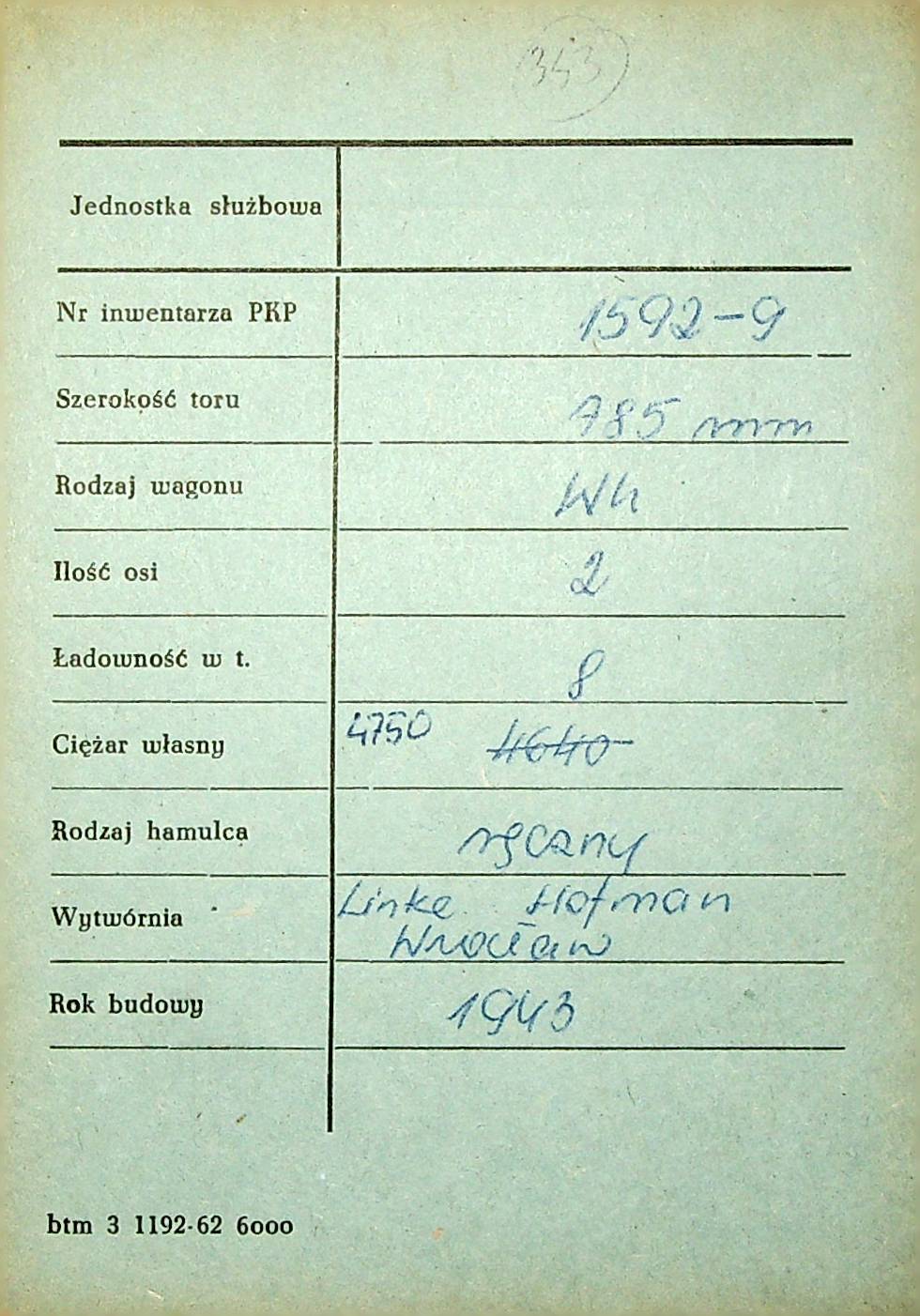 Karta wagonu Górnośląskich Kolei Wąskotorowych |