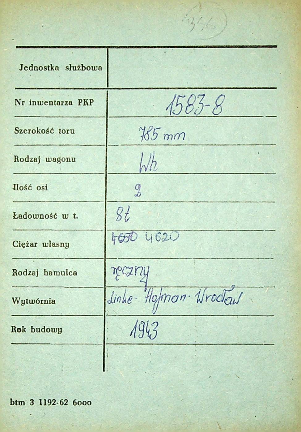 Karta wagonu Górnośląskich Kolei Wąskotorowych |