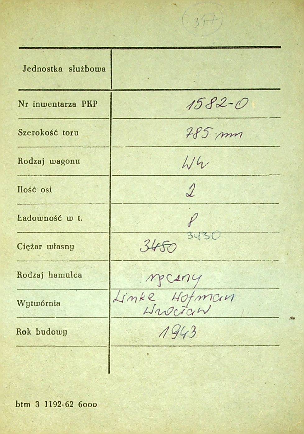 Karta wagonu Górnośląskich Kolei Wąskotorowych |