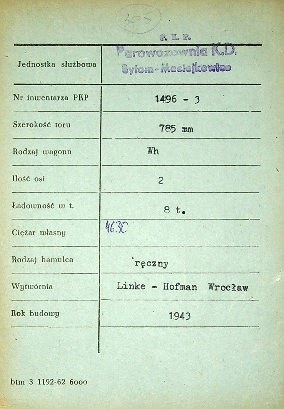 Karta wagonu Górnośląskich Kolei Wąskotorowych |