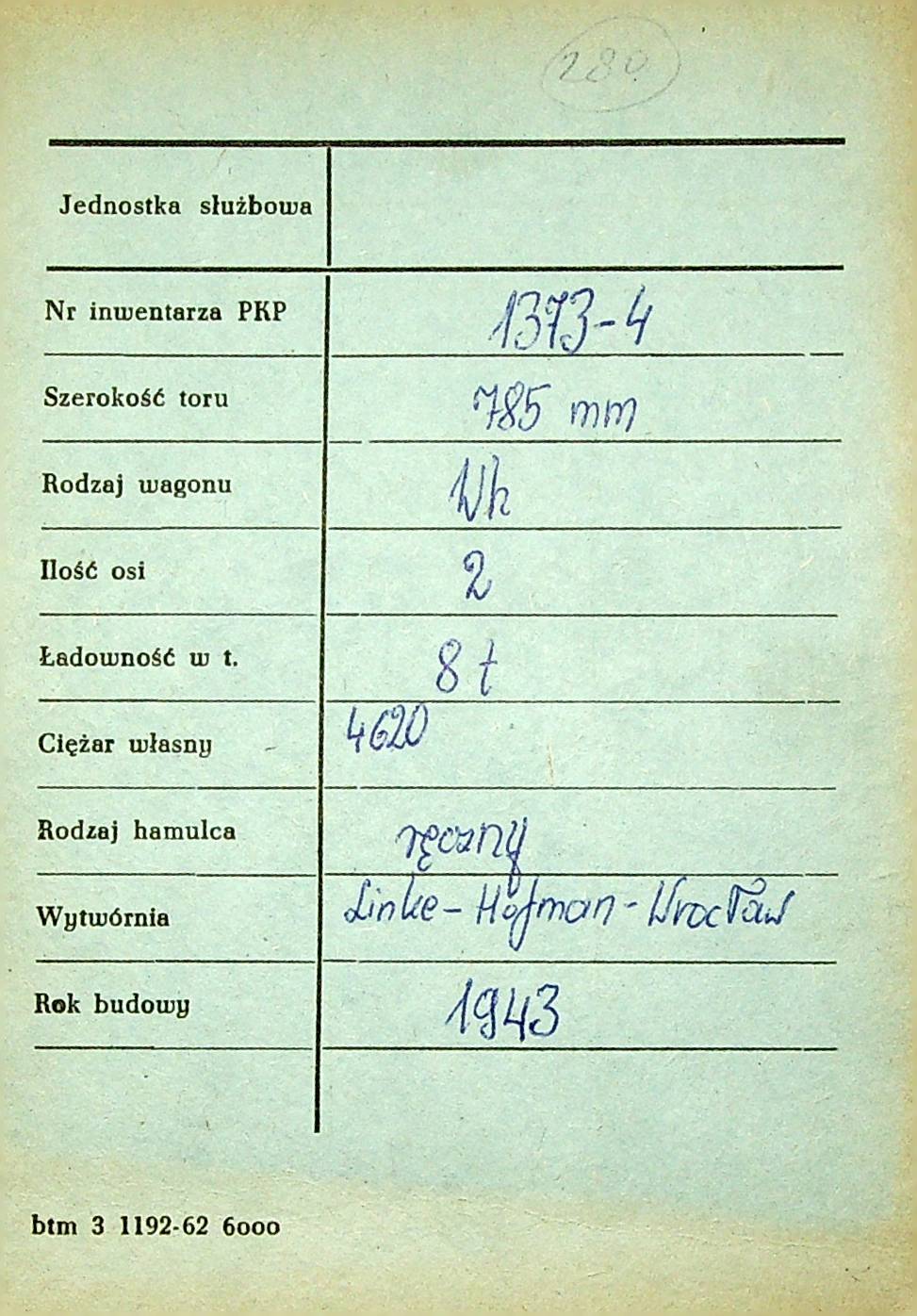 Karta wagonu Górnośląskich Kolei Wąskotorowych |
