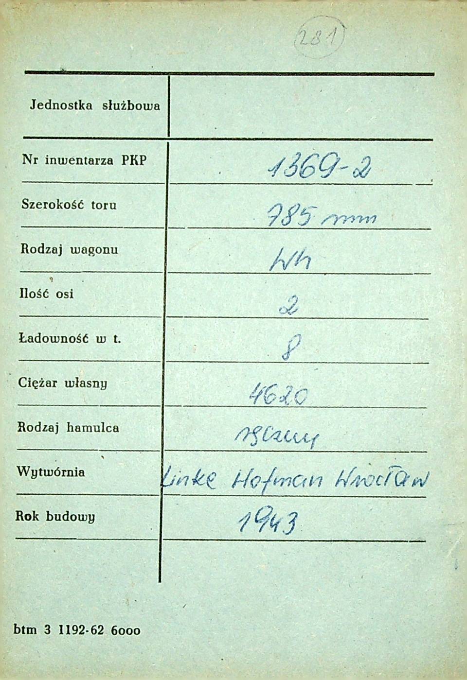 Karta wagonu Górnośląskich Kolei Wąskotorowych |