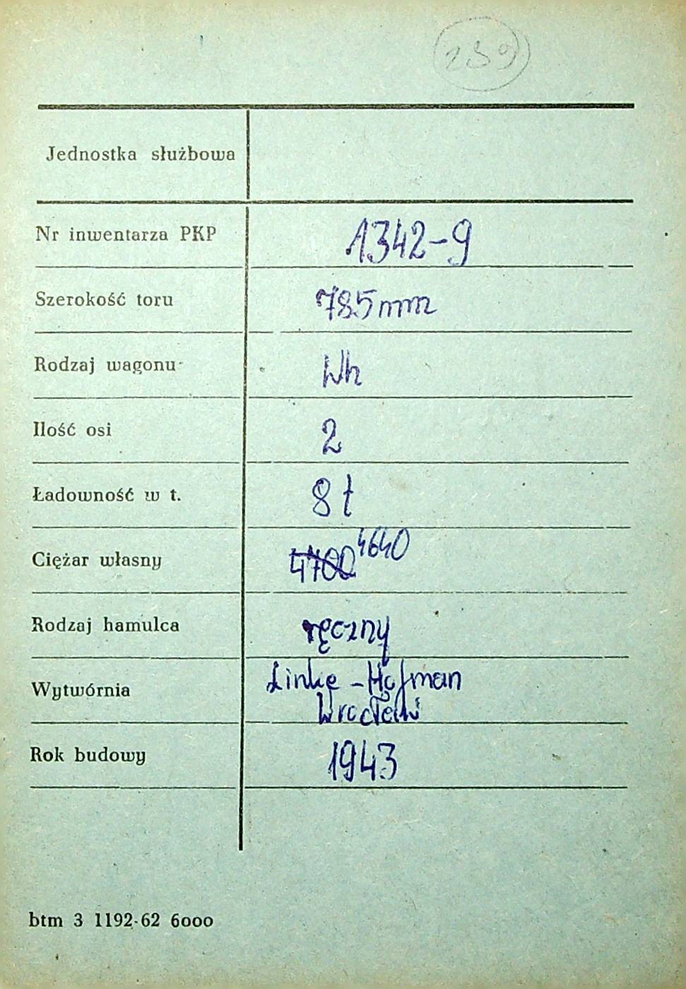 Karta wagonu Górnośląskich Kolei Wąskotorowych |