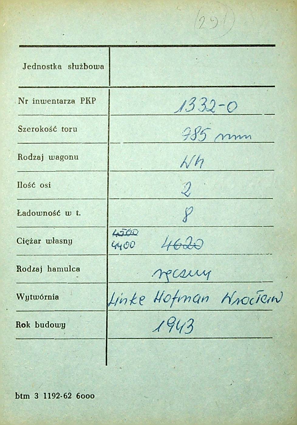 Karta wagonu Górnośląskich Kolei Wąskotorowych |