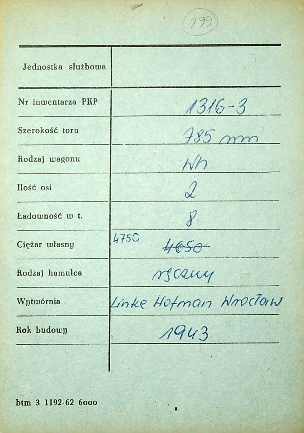 Karta wagonu Górnośląskich Kolei Wąskotorowych |