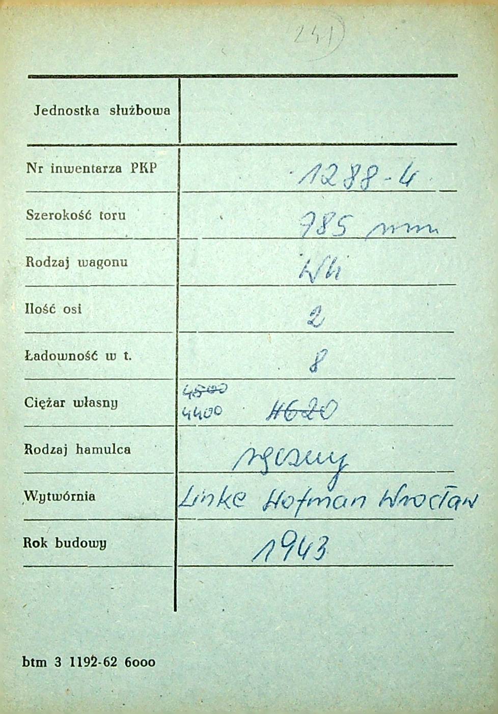 Karta wagonu Górnośląskich Kolei Wąskotorowych |