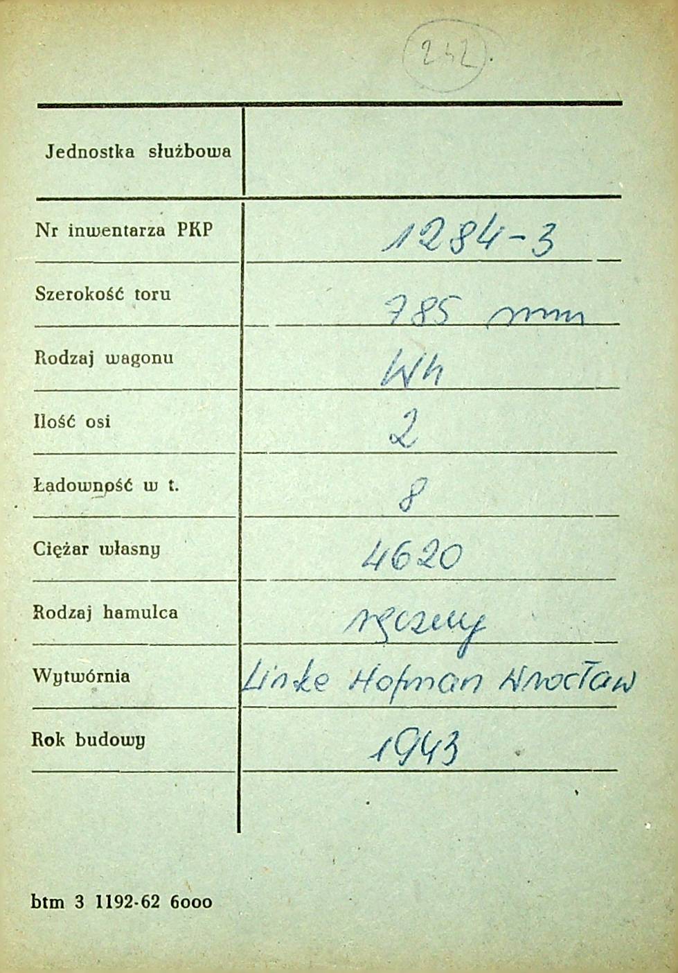 Karta wagonu Górnośląskich Kolei Wąskotorowych |