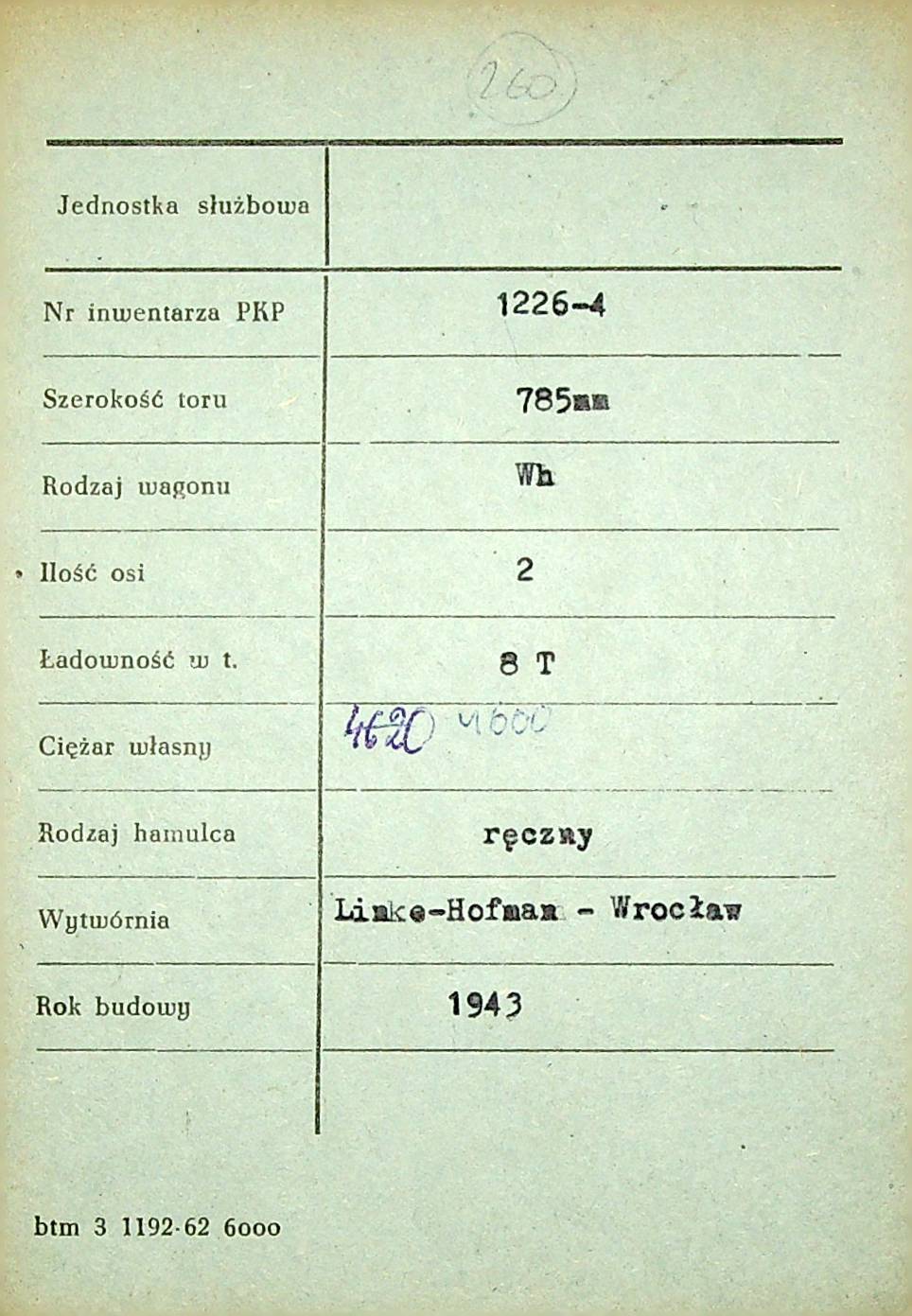 Karta wagonu Górnośląskich Kolei Wąskotorowych |