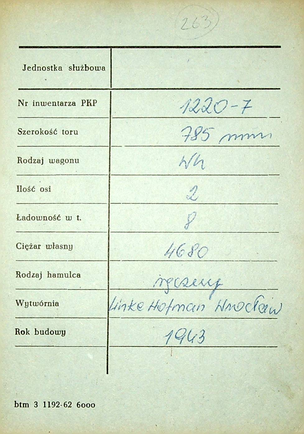 Karta wagonu Górnośląskich Kolei Wąskotorowych |