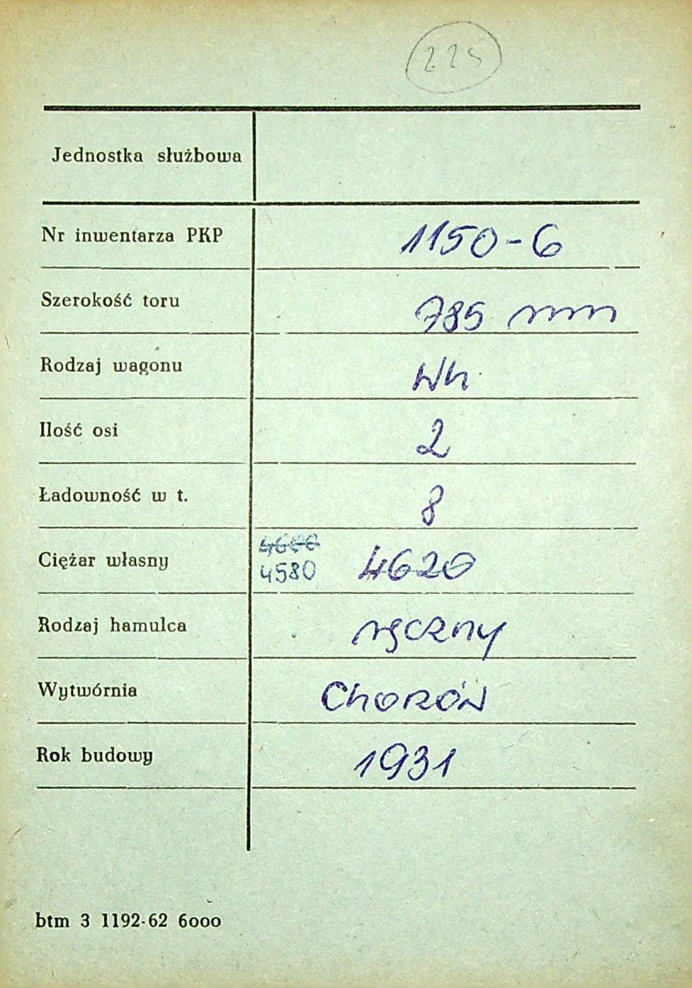 Karta wagonu Górnośląskich Kolei Wąskotorowych |