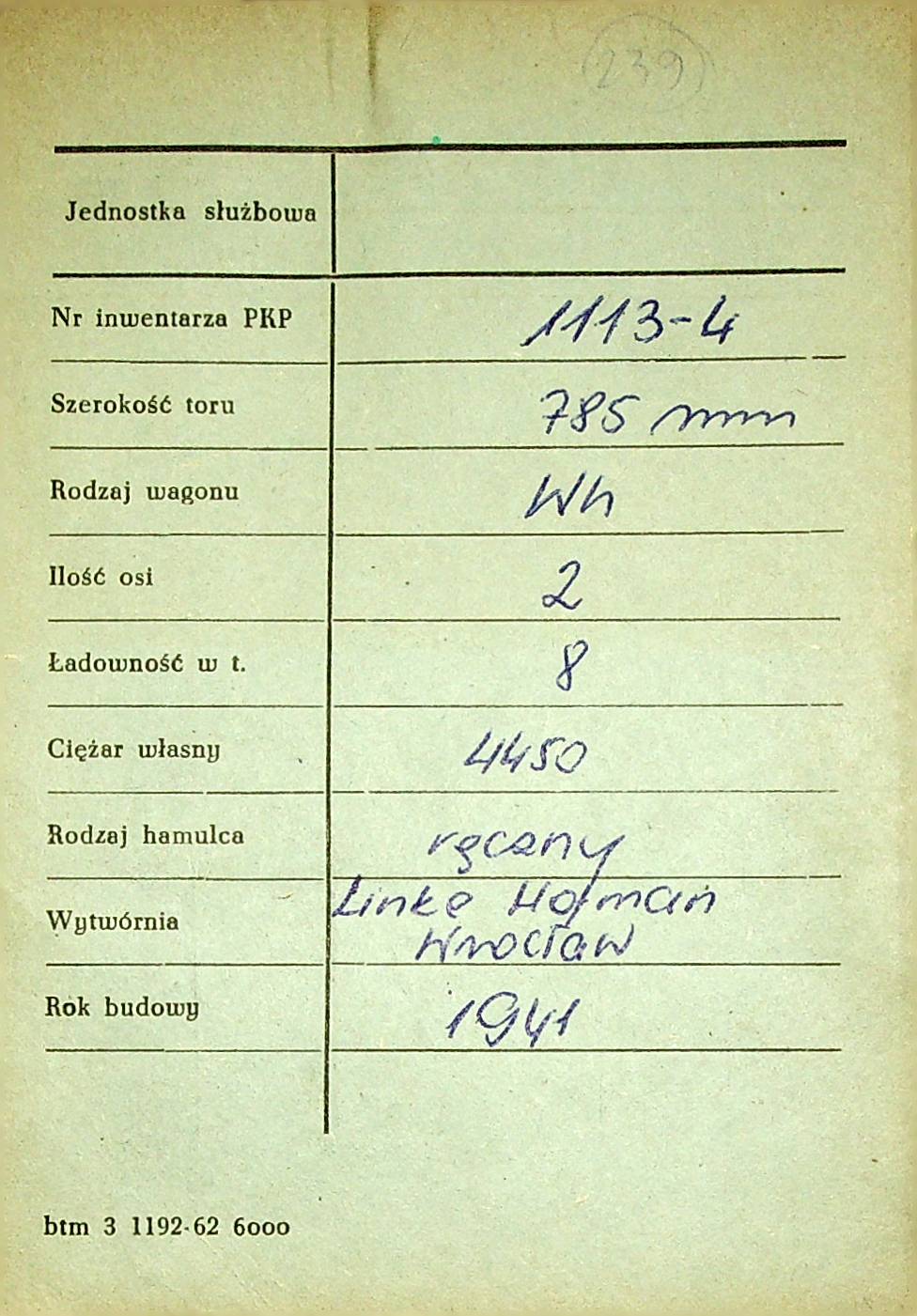 Karta wagonu Górnośląskich Kolei Wąskotorowych |