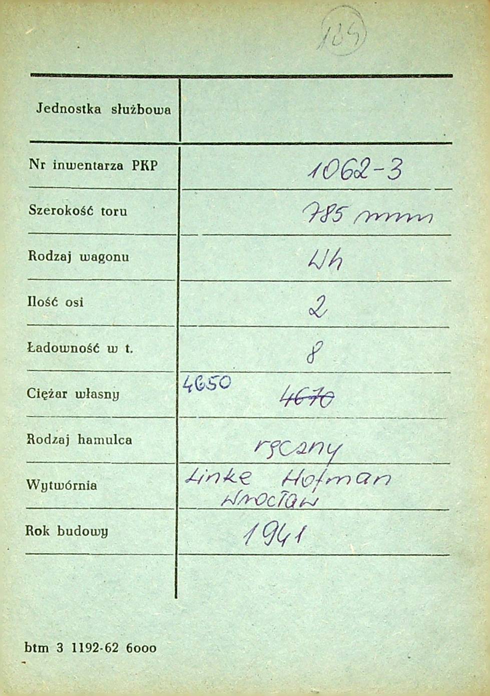 Karta wagonu Górnośląskich Kolei Wąskotorowych |