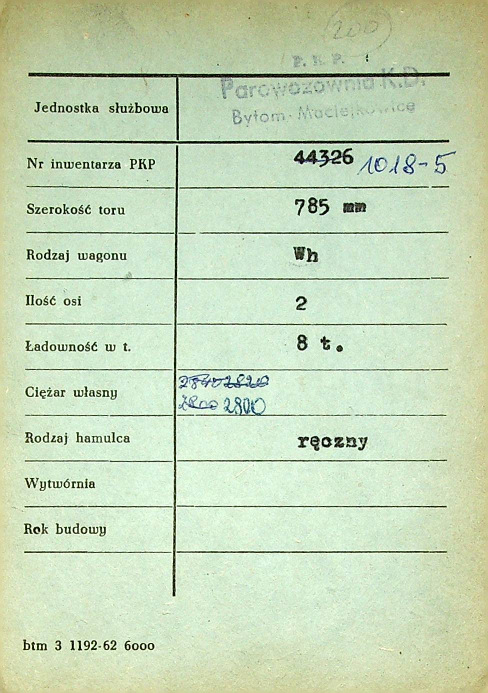 Karta wagonu Górnośląskich Kolei Wąskotorowych |