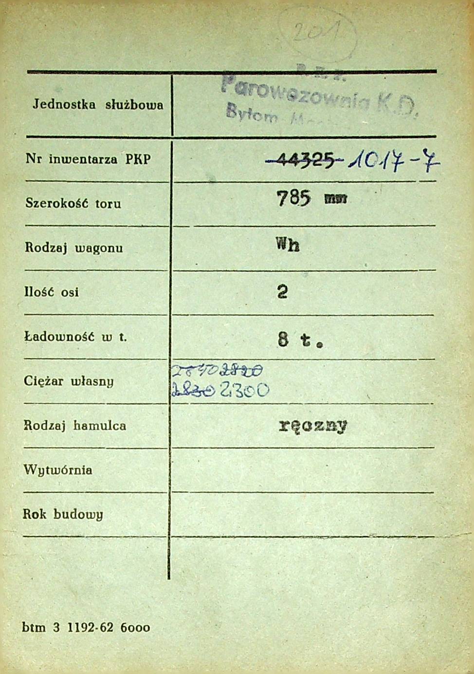 Karta wagonu Górnośląskich Kolei Wąskotorowych |