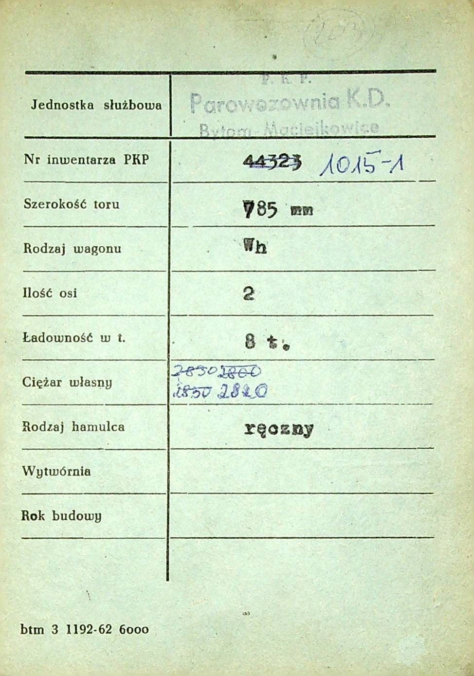 Karta wagonu Górnośląskich Kolei Wąskotorowych |