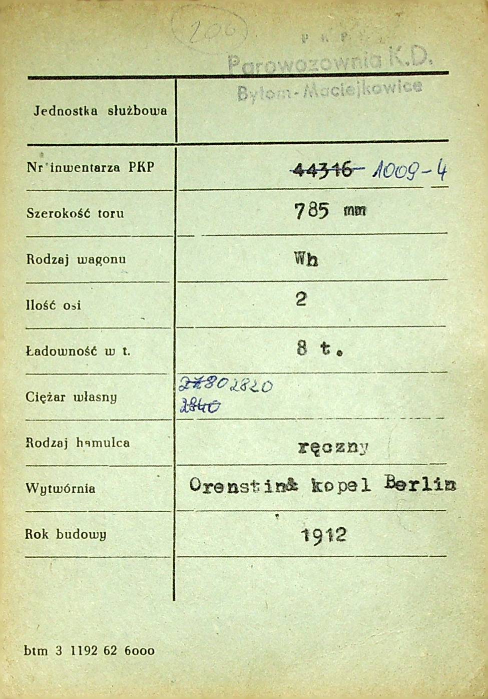 Karta wagonu Górnośląskich Kolei Wąskotorowych |