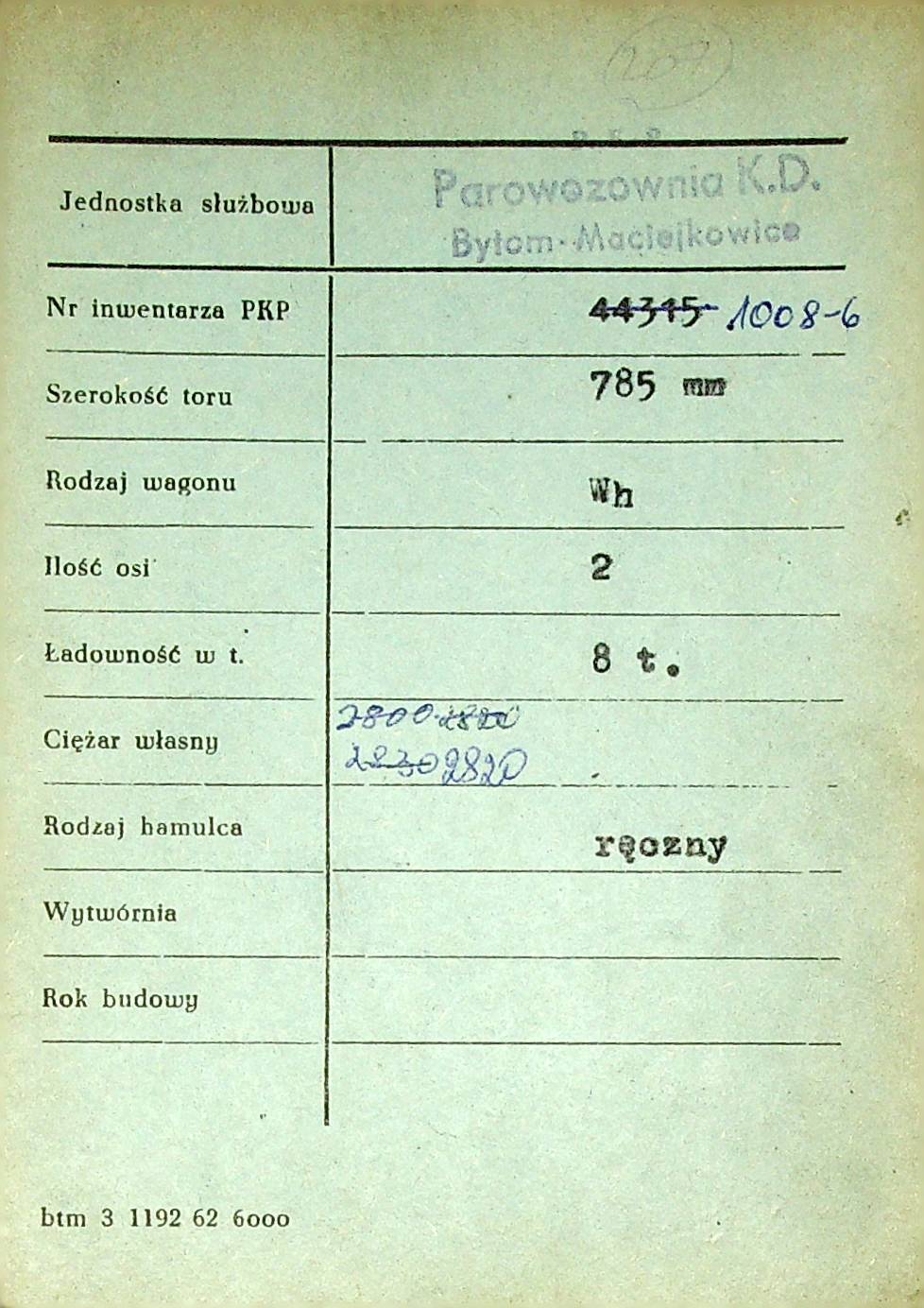Karta wagonu Górnośląskich Kolei Wąskotorowych |