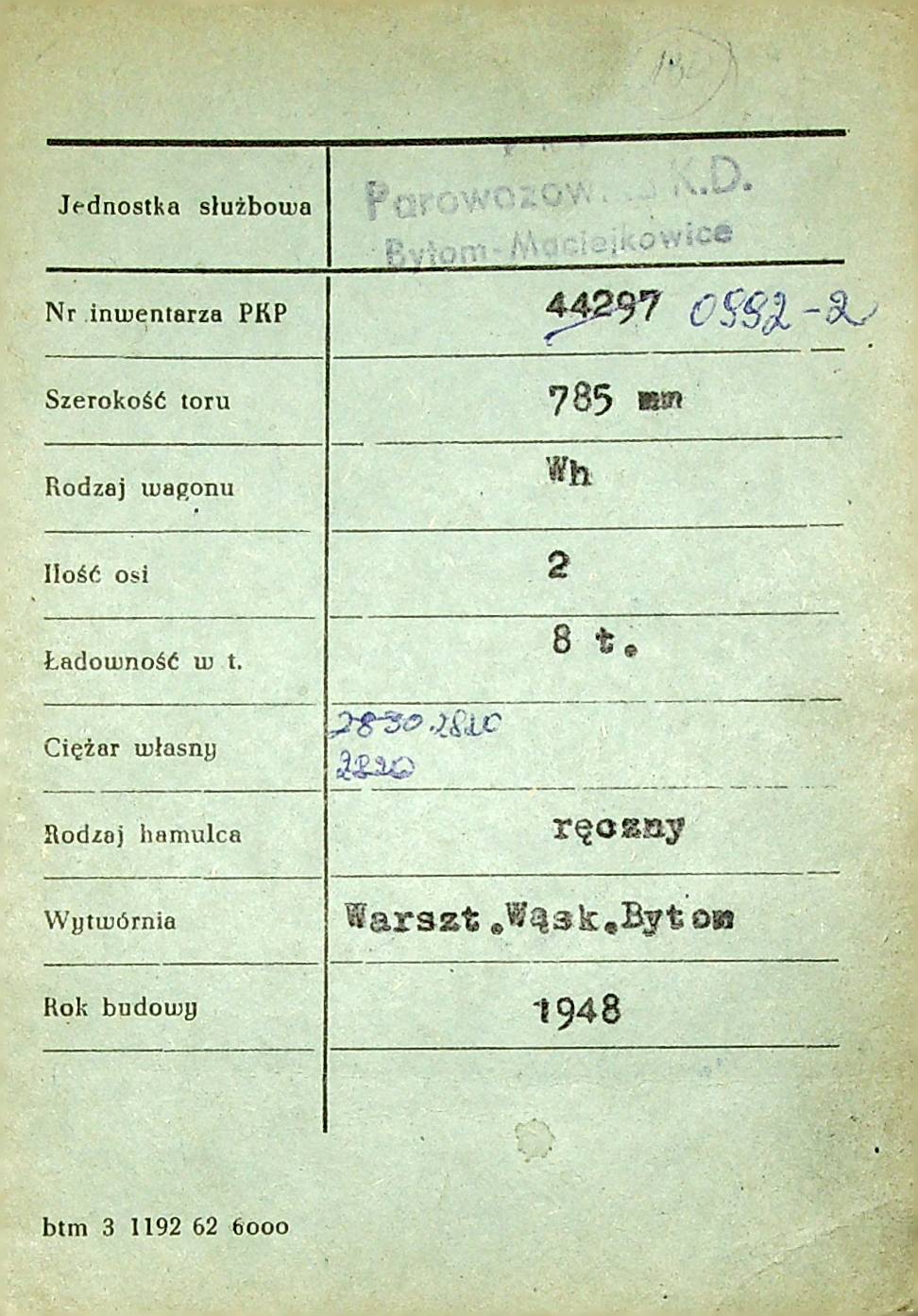 Karta wagonu Górnośląskich Kolei Wąskotorowych |