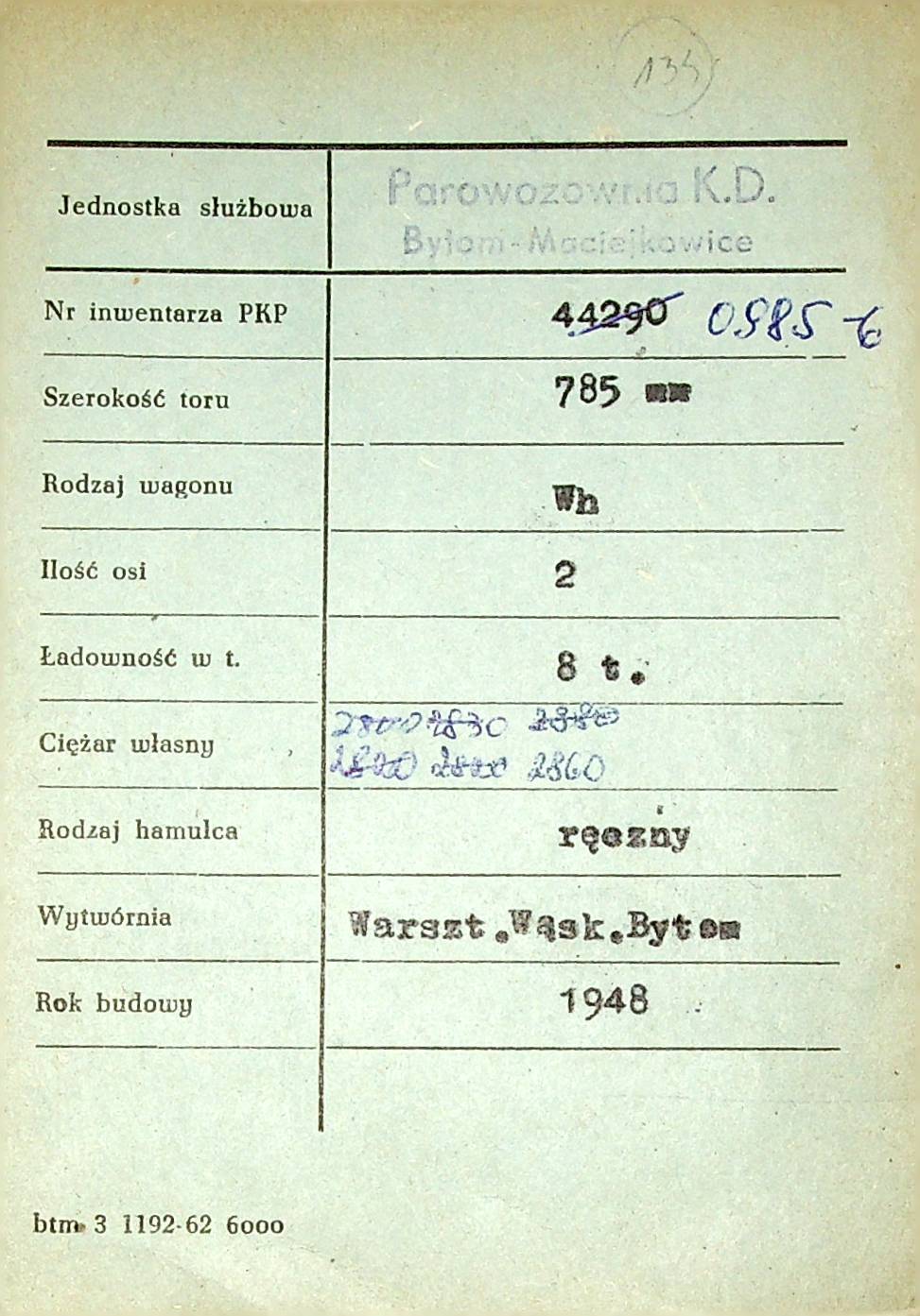 Karta wagonu Górnośląskich Kolei Wąskotorowych |