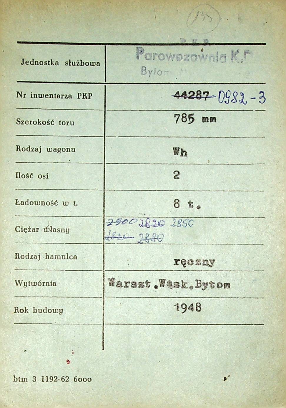 Karta wagonu Górnośląskich Kolei Wąskotorowych |