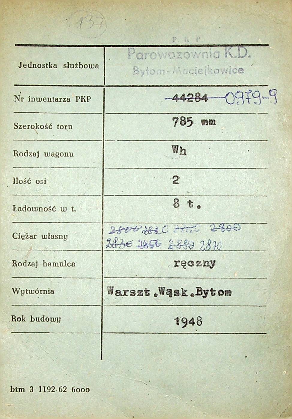Karta wagonu Górnośląskich Kolei Wąskotorowych |