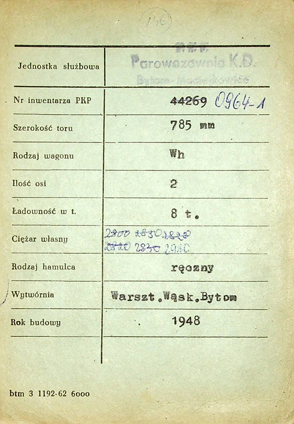Karta wagonu Górnośląskich Kolei Wąskotorowych |