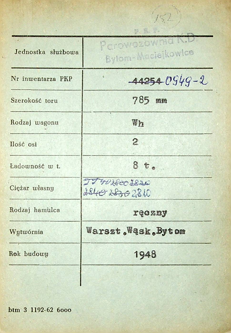 Karta wagonu Górnośląskich Kolei Wąskotorowych |