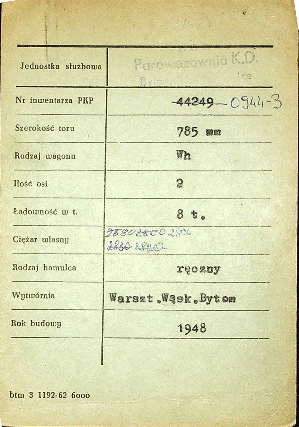 Karta wagonu Górnośląskich Kolei Wąskotorowych |