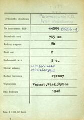 Karta wagonu Górnośląskich Kolei Wąskotorowych |