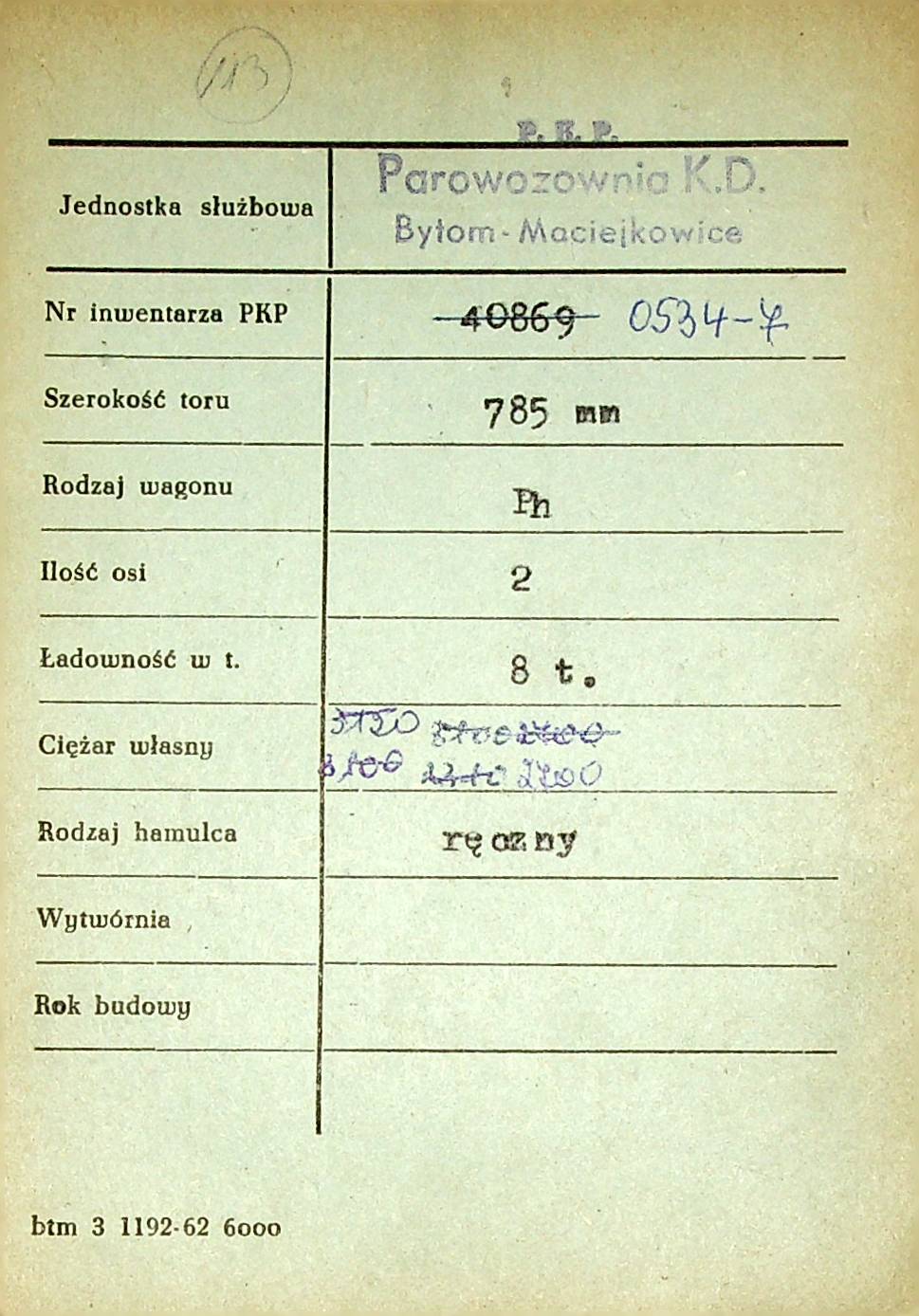 Karta wagonu Górnośląskich Kolei Wąskotorowych |