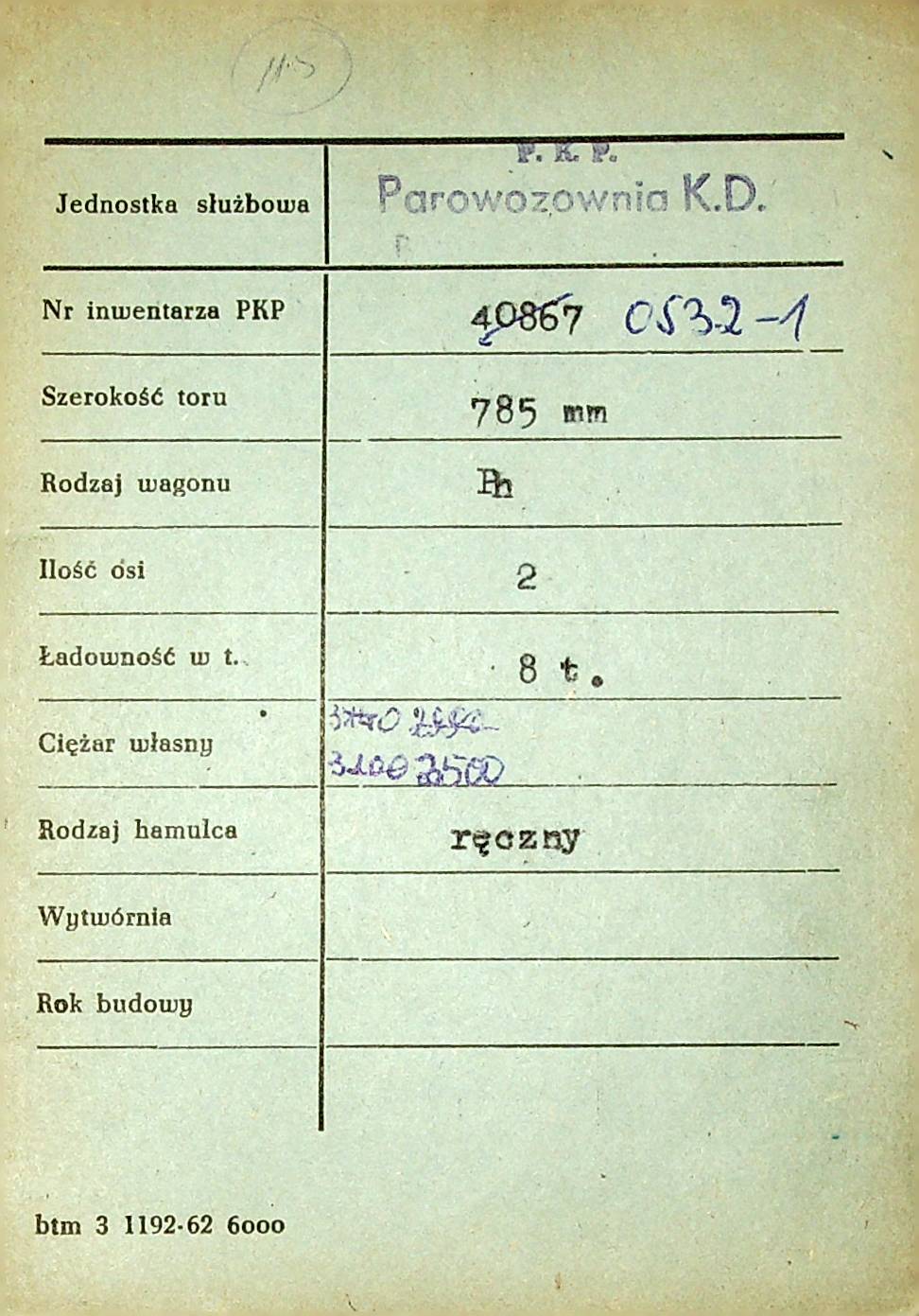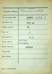 Karta wagonu Górnośląskich Kolei Wąskotorowych |
