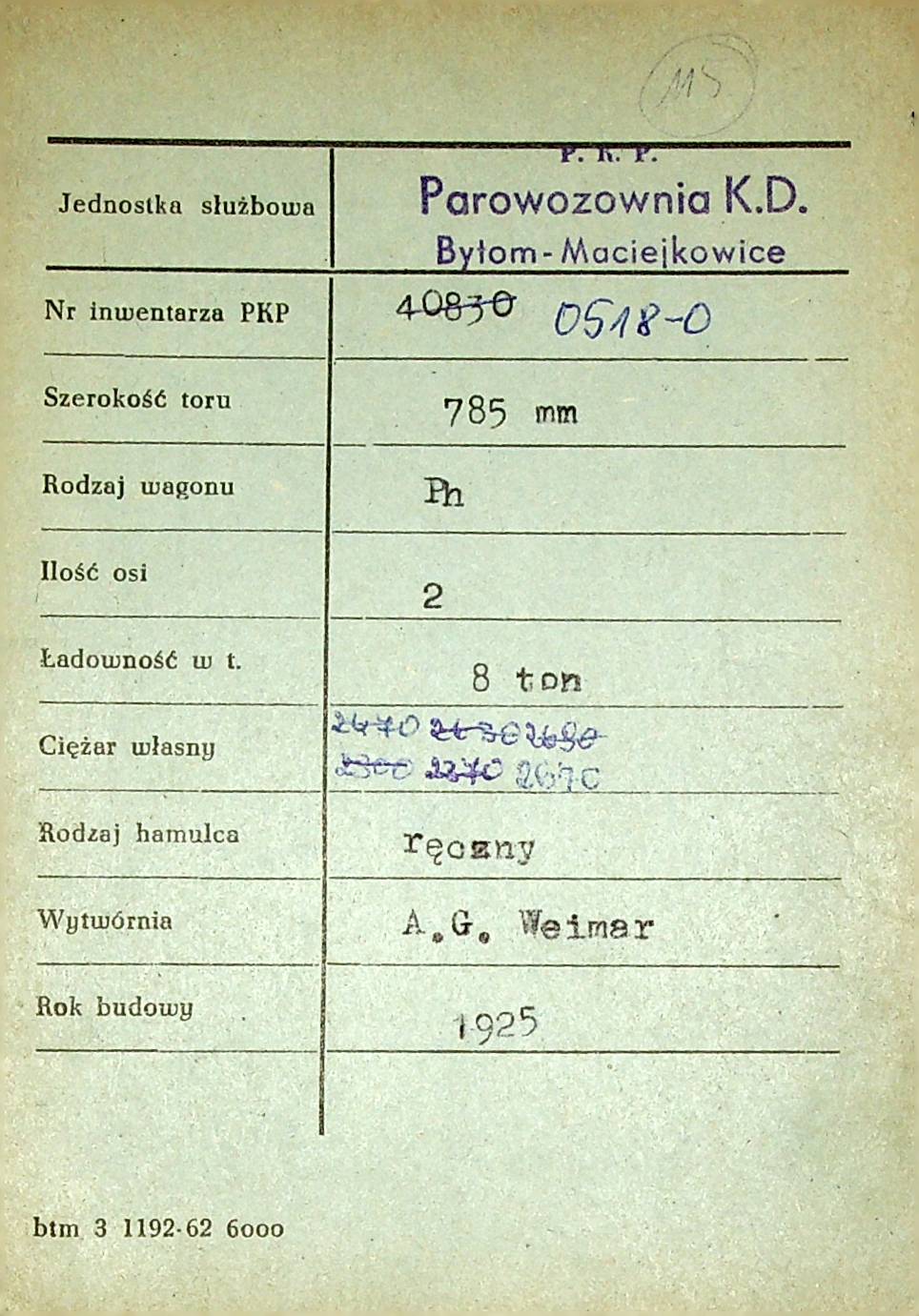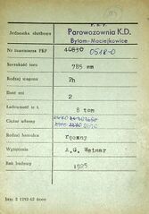 Karta wagonu Górnośląskich Kolei Wąskotorowych |