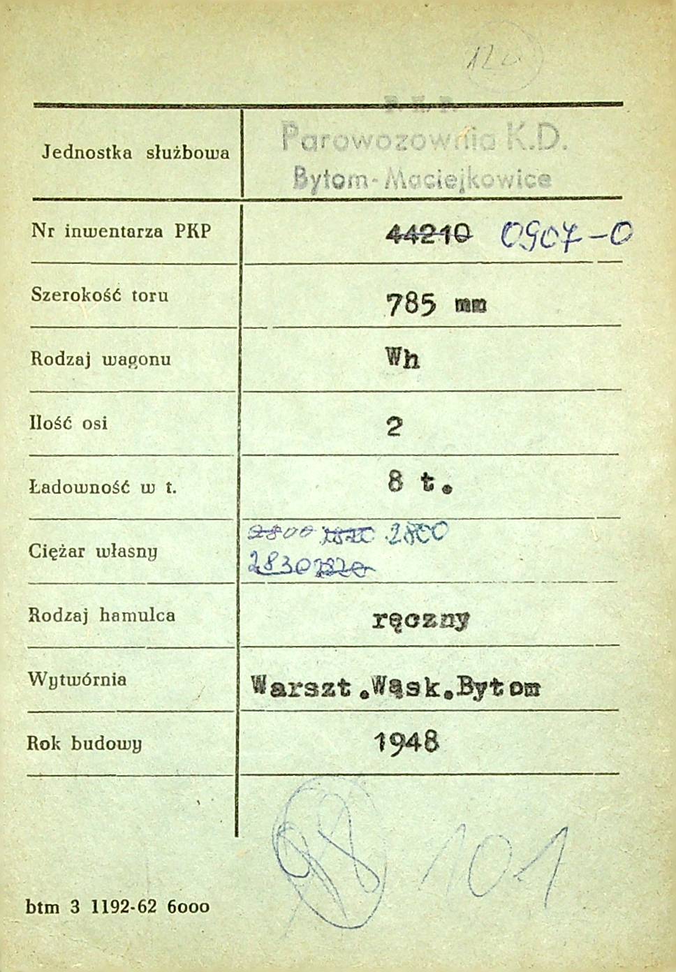 Karta wagonu Górnośląskich Kolei Wąskotorowych |
