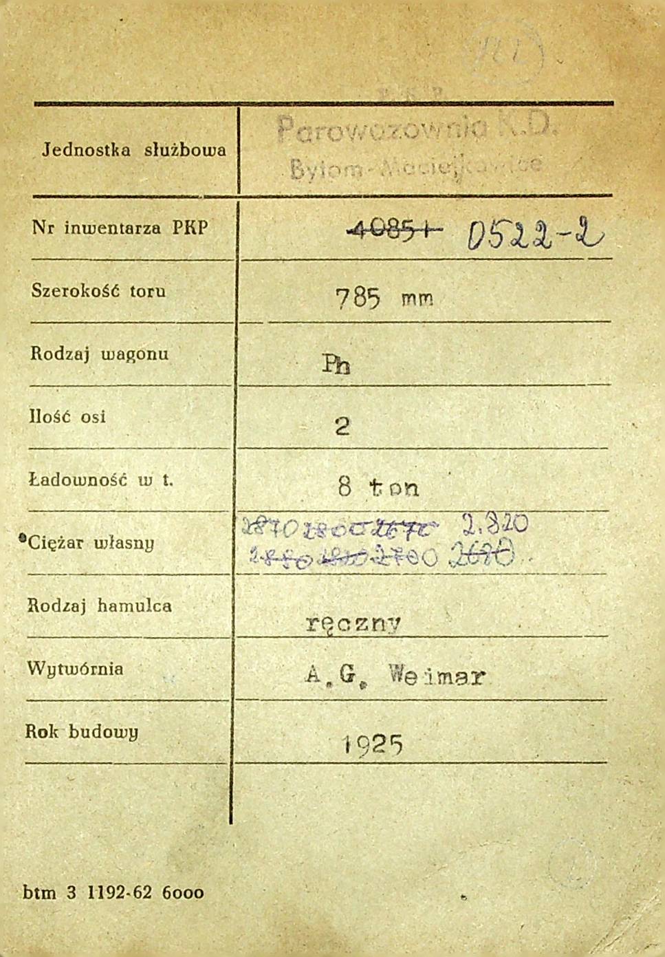 Karta wagonu Górnośląskich Kolei Wąskotorowych |