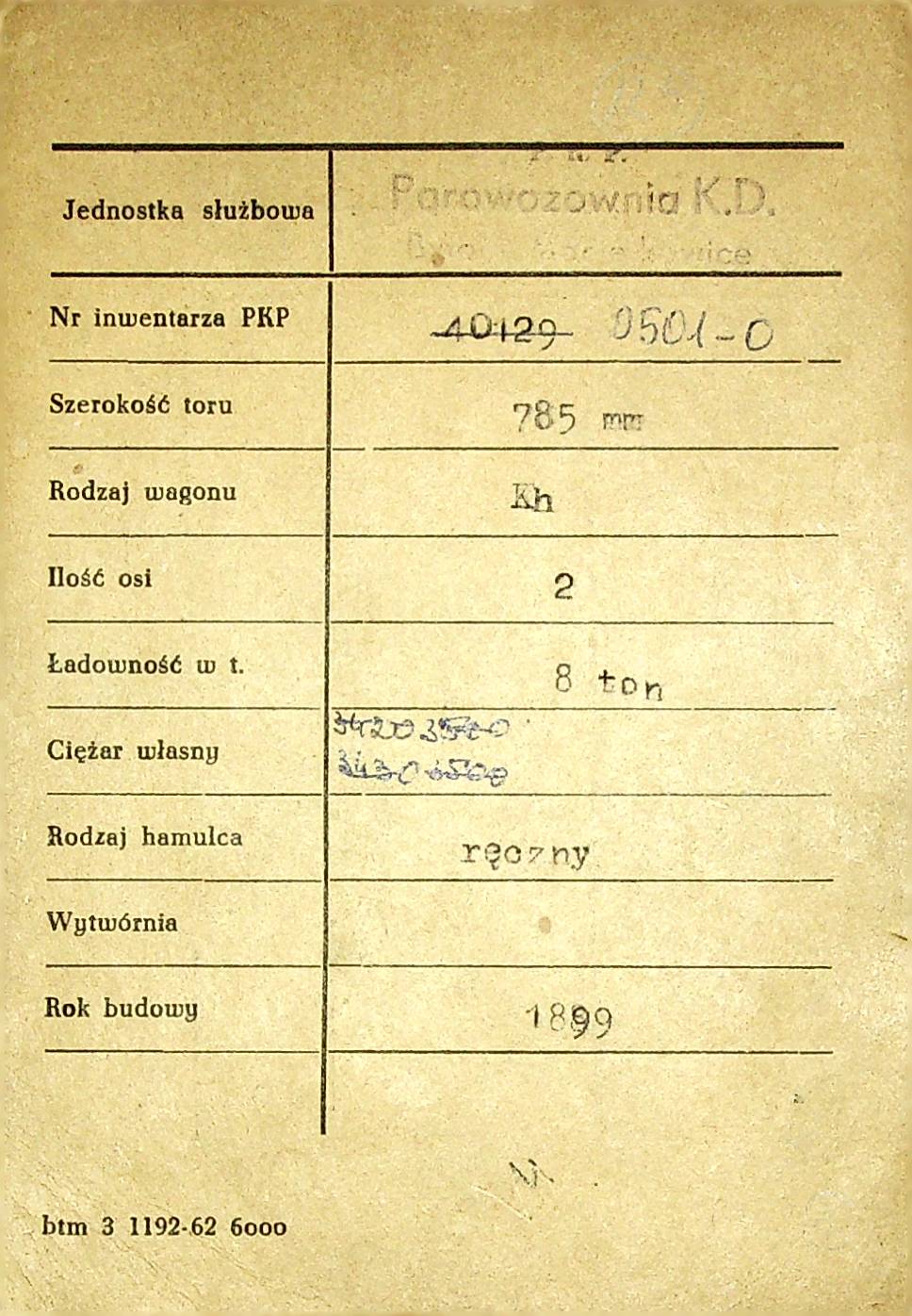 Karta wagonu Górnośląskich Kolei Wąskotorowych |