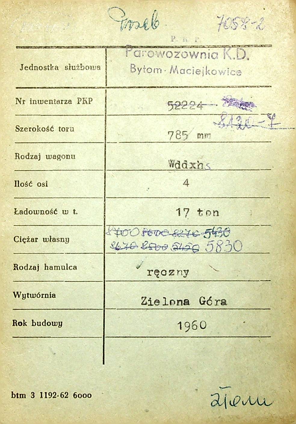 Karta wagonu Górnośląskich Kolei Wąskotorowych |